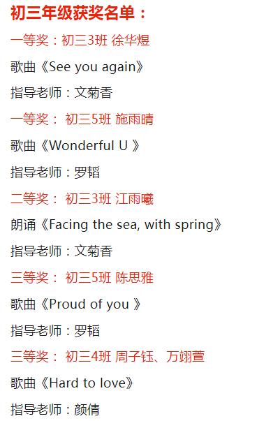 初三3班徐华煜同学带来的《See you again 》点燃了全场同学的热情!我校“让每一个生命绽放光彩”的理念,在这一刻体现得淋漓尽致!