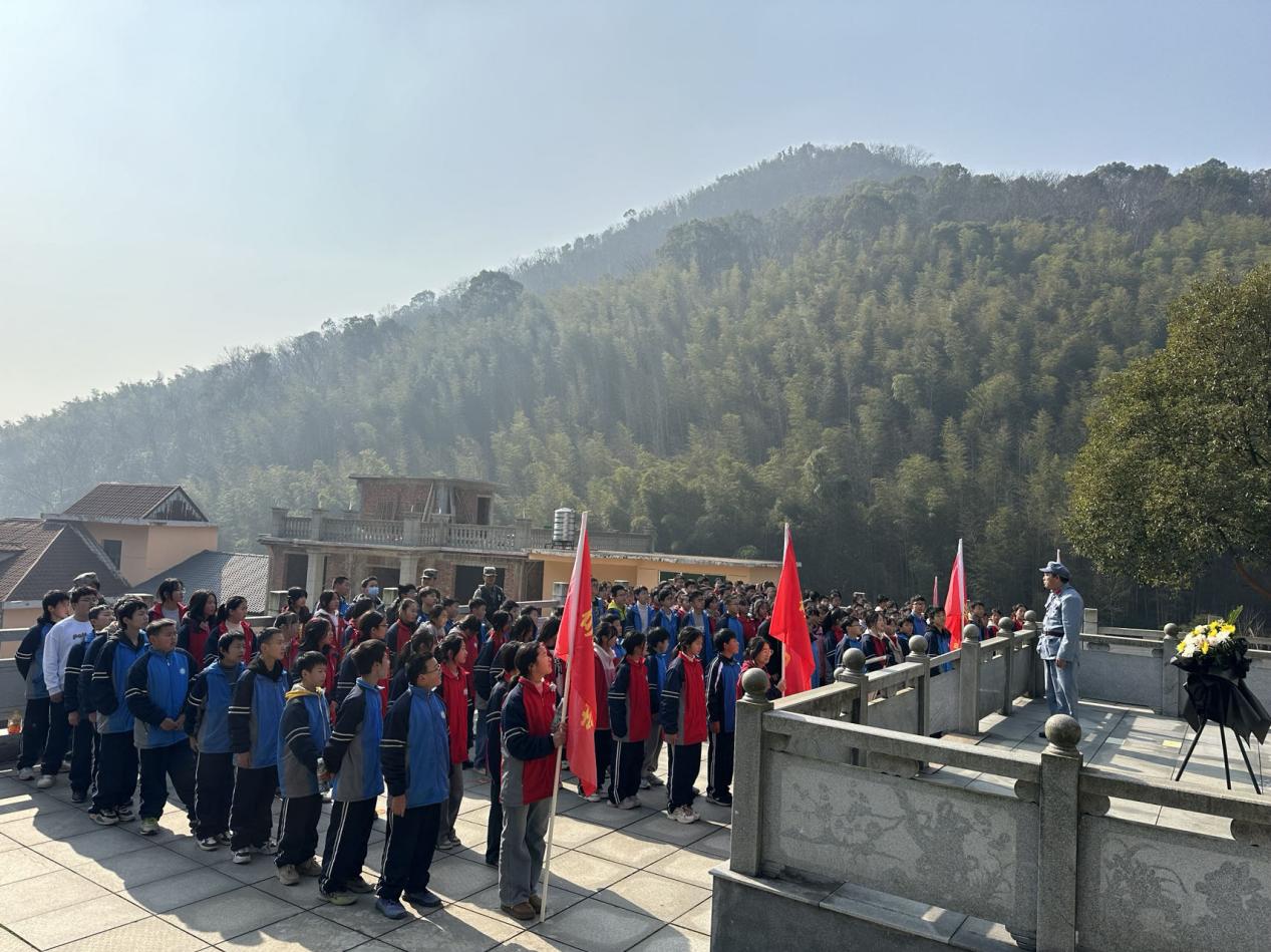为缅怀革命先烈、赓续革命精神,进一步将“学史明理、学史增信、学史崇德、学史力行”走深走实。在庄严肃穆的纪念塔前,学生们向革命烈士纪念塔敬献花篮并整理缎带,向革命烈士三鞠躬,共同默哀一分钟,表达对先烈们的缅怀之情和崇高敬意。随后,开展了现场学习。邀请当地老党员为学生们讲解岷山革命烈士的英雄事迹,感受岷山乡革命先烈打击赣北地方反动武装和日寇的入侵惊心动魄的历史,激励学生们从中感悟震撼人心的信仰力量、艰苦卓绝的奋斗精神。
