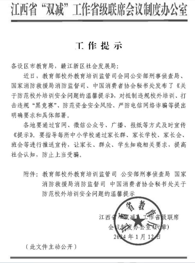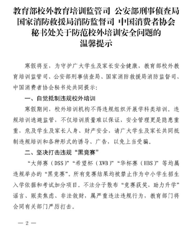 教育部校外教育培训监管司公安部刑事局国家消防救援局消防监督司中国消费者协会
