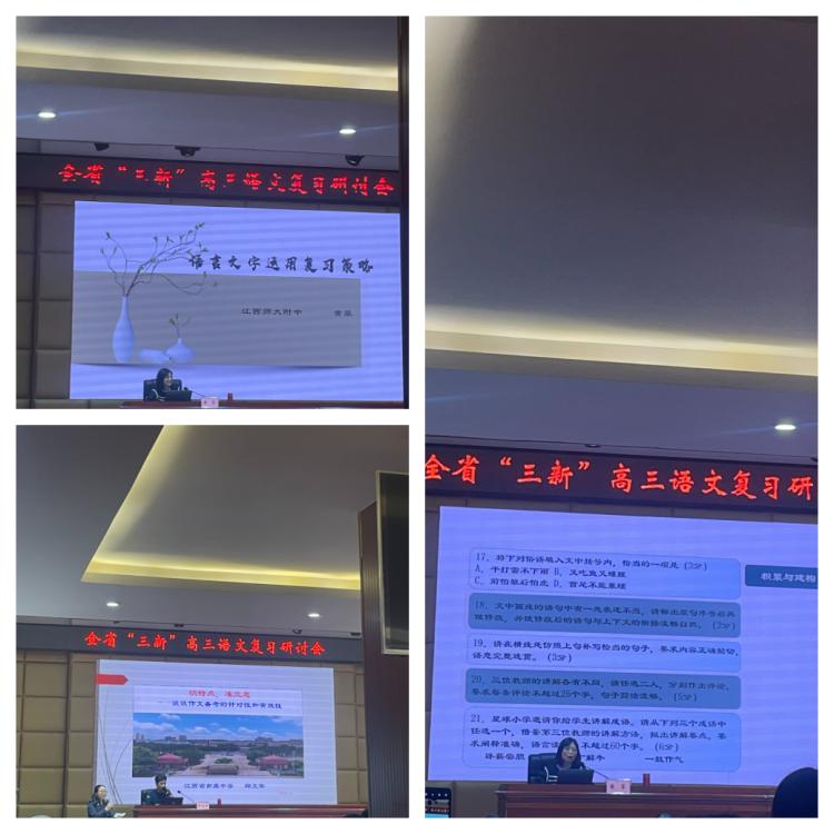 为了更好地进行高中“三新”变革的实践与研究,做好高三复习冲刺阶段的教学研究,3月26日-28日,江西省教育厅教学教材研究室在江西师范大学附属中学举行了高三语文复习研讨会。全省各地区学校骨干教师及其他相关教师参会并进行交流。