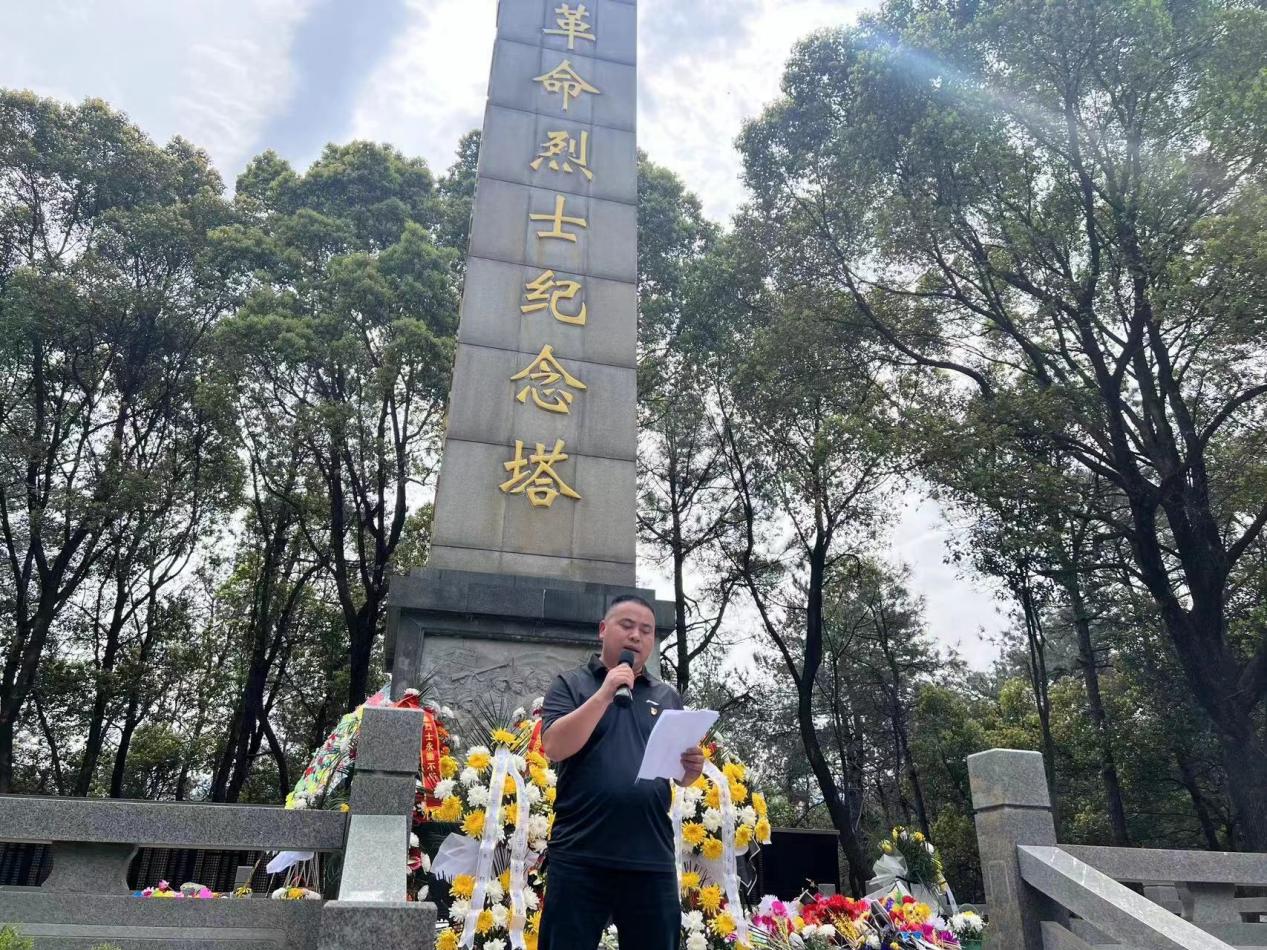 烈士陵前,大家整齐排列,肃立默哀,表达对革命先烈深深敬意。随后党员教师代表曹正元和学生代表李淑怡进行发言,校党委书记雷新江在讲话中通过回顾革命先烈英勇事迹,号召广大师生要铭记历史、珍惜当下,将他们的精神内化于心、外化于行,用更加饱满的热情投身到工作、学习和生活中。