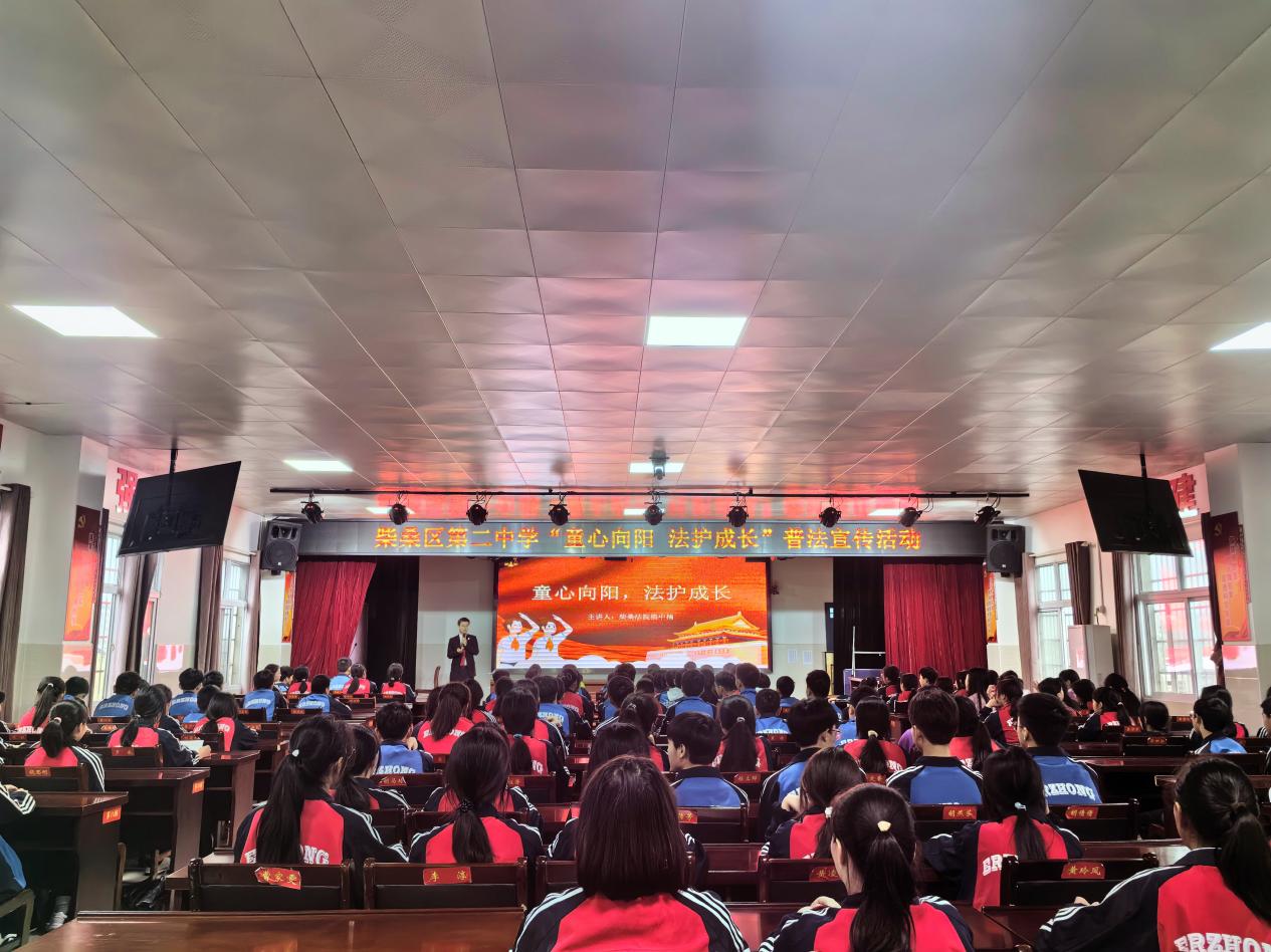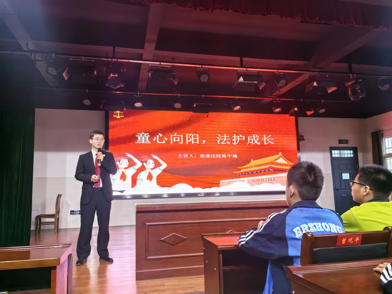 (通讯员 李冰钰)为进一步落实区平安建设主题宣传月工作,增强未成年人法律意识,柴桑区第二中学团委联合柴桑区法院少年法庭于4月1日下午在柴桑区二中开展“童心向阳,法护成长”普法宣传活动,来自柴桑区人民法院少年法庭的干警熊中楠为我们的青年学生带来了一场别开生面的普法课。