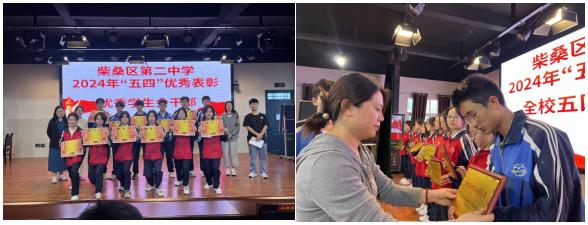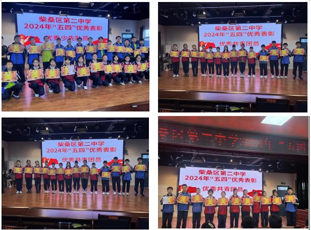 优秀少先队员、优秀共青团员、优秀团干、优秀学生会成员、优秀学生会干部、优秀社团干部以及全校红领巾中队和全校五四红旗团支部代表分别上台领奖,灿烂的笑容洋溢在同学们的脸上,鲜艳的奖状放在胸前,此时此刻,同学们切实感受到了身为少先队员和共青团员的先进性和荣誉感。