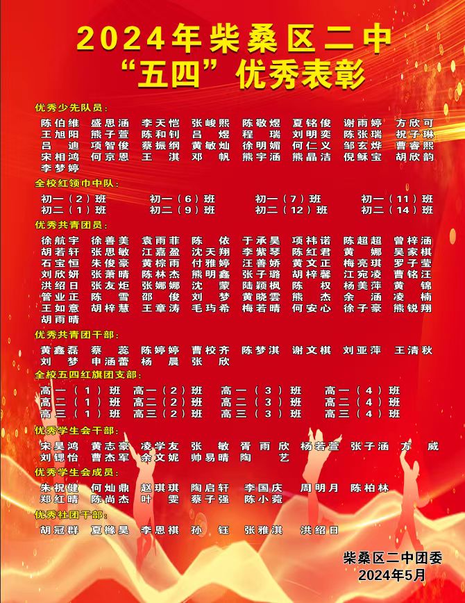 百年栉风沐雨,共青团始终坚定不移跟党走,团结带领广大团员青年前仆后继、砥砺奋进、勇当先锋。一代又一代青年站在时代的前列,不计得失,用青春之力承载起国家和民族的光明未来。相信我们青年学生们定能肩负起新时代青年的责任与使命,不负众望,砥砺前行!