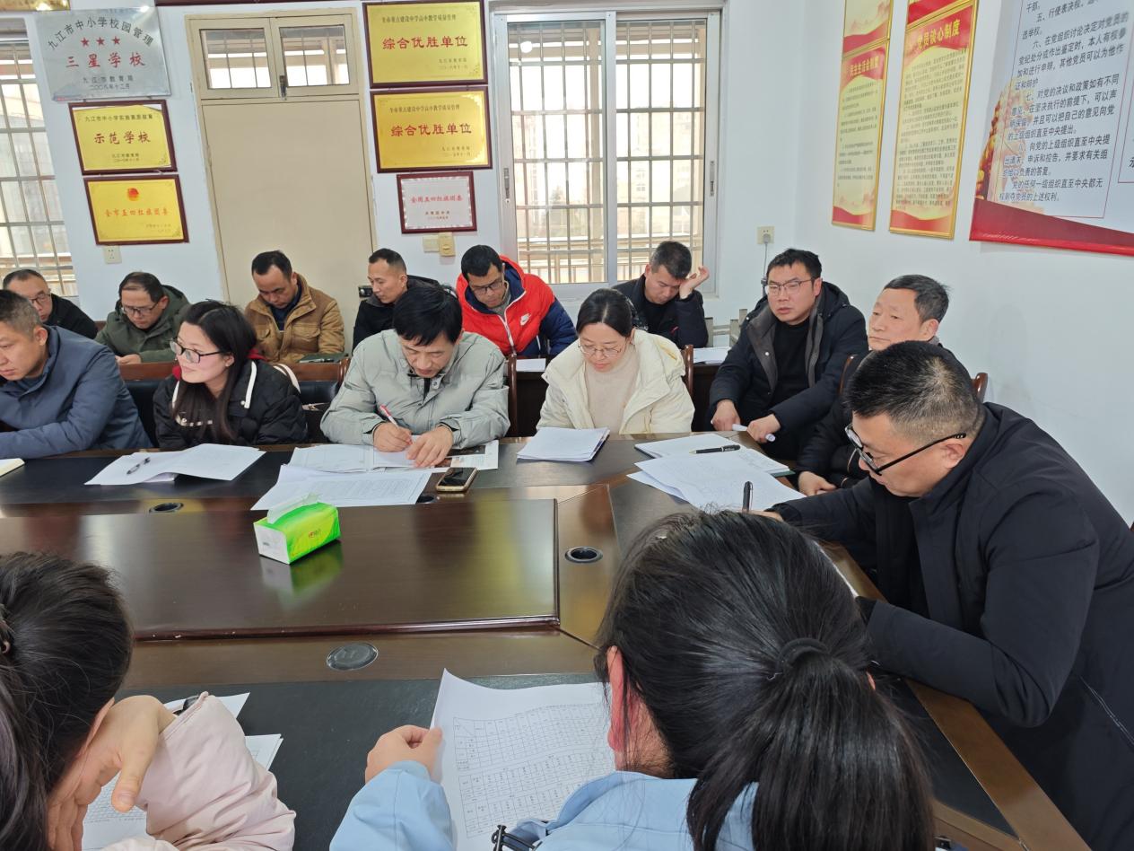 春风送暖,万物竞发。为明确复习方向,落实备考策略,部署冲刺计划,确保我校中考备考工作有序进行,近日,柴桑区二中召开了2025年春季学期初三年级复习备考会。此次会议旨在统一思想、明确目标、凝聚力量,为即将到来的中考做好充分准备。会议由初三年级组组长罗来欢主持,校班子成员、全体初三年级班主任及各科备课组长参加了会议。
